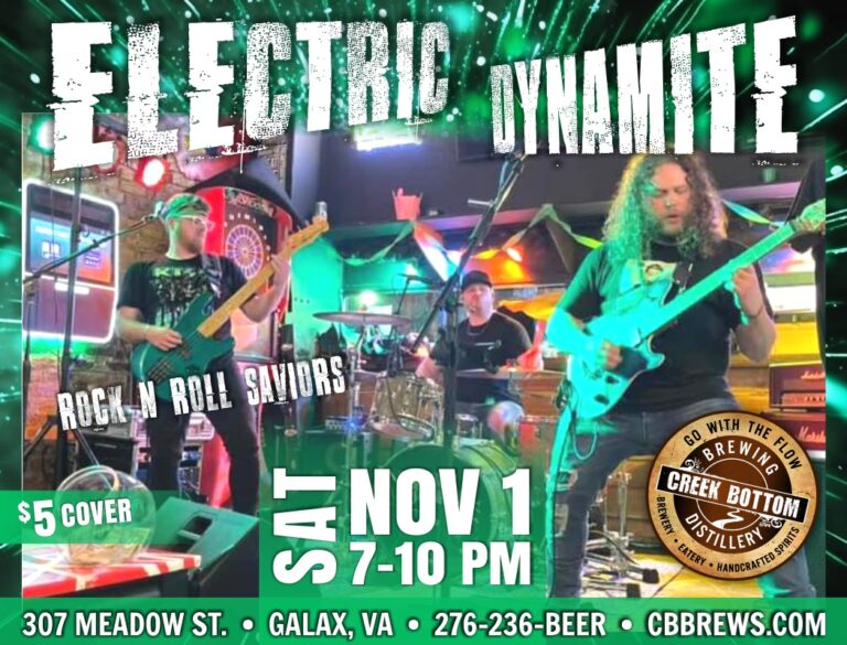 Creek Bottom Brewing welcomes Carolina Rust to the stage on Fri, Oct 31 from 7-10 pm pm. Enjoy an evening of classic rock & country covers. Come on down, blow the suds off a few at The Bottom & enjoy the show!