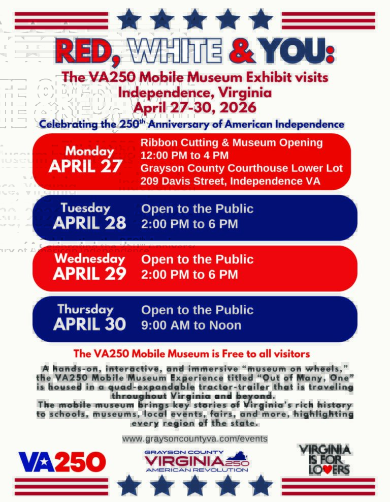 Living Historians and Reenactors based in Northeastern Tennessee will offer the public a glimpse of what life was like in another time. Demonstrations will represent wars and conflicts from the Revolutionary time period, Civil war, World Wars I and II, and more. This is a wonderful educational opportunity to honor those that lived, fought and died for our Country. This is event is free to the public.