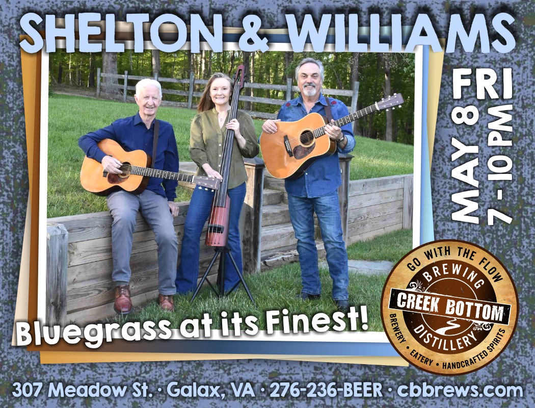 Jay Shelton and Johnny & Jeanette Williams will light up the stage at Creek Bottom Brewing on Fri, May 8 from 7-10 pm. They are a bluegrass trio that hits the sweet spot where their sound is traditional but has no dust on it! Grab a cold brew, a hot bubbly dish of delish and settle in for a great show!