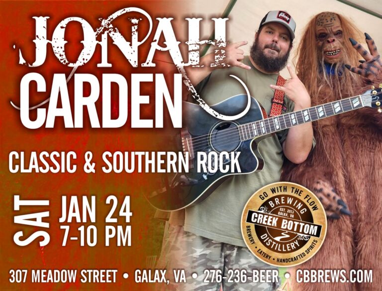Stillwater Junction live onstage at Creek Bottom Brewing on Sat, Nov 30 from 7-10 pm. They are an Outlaw Country band that performs covers of old and new country plus some awesome rock tunes. They even throw in some great original music for you to grub and jam to in Galax, VA! $5 Cover.